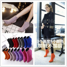 欧洲站2016秋冬新款尖头高跟短靴女细跟单鞋绒面马丁靴性感靴子女