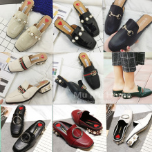 2017新款春夏韩版英伦风方扣女鞋金属珍珠粗跟中跟包头半拖凉拖鞋
