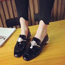 韩版17春新品复古珍珠鞋皮鞋女鞋子时尚中跟鞋懒人单鞋方头浅口鞋