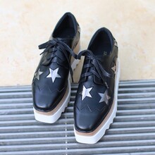 夏秋星星松糕鞋女2016英伦系带真皮坡跟高跟单鞋休闲厚底鞋女鞋