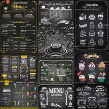 粉笔手绘黑板咖啡厅美食西餐蛋糕饮料鸡尾酒菜单模板EPS矢量素材