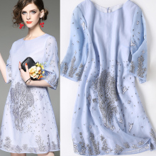 面料厚实,做工精细,钉珠也很结实,很漂亮的小裙子,同事都说好看,快递也很快,非常赞。