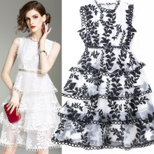 2017款蓬蓬网纱刺绣连衣裙女夏雪纺无袖飘逸蛋糕裙背心礼服裙子仙