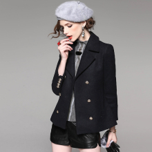 西装领短款毛呢外套女秋冬双排扣短装小款羊毛呢子大衣加厚小香风