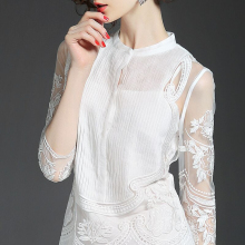 夏季名媛小香风雪纺纱裙网纱蕾丝刺绣欧根纱连衣裙仙女裙飘逸裙子