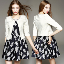 春秋装时尚小香风太空棉连衣裙长袖两件套女蓬蓬短裙女神套装裙子