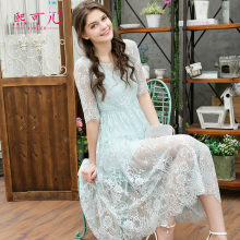 熙可儿新款夏季蕾丝连衣裙长裙沙滩裙女显瘦中长款蕾丝裙小清新