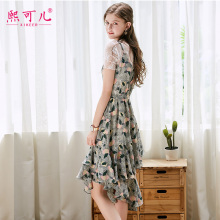 熙可儿碎花雪纺连衣裙短袖夏新小清新收腰裙子女中长款度假沙滩裙