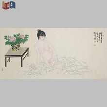黄庭名家真迹纯手绘中国书字画作品收藏四尺横幅客工笔仕女图979
