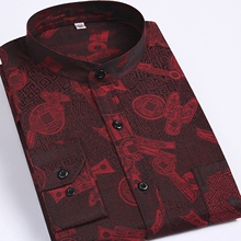柒鲨唐装古风长袖衬衫男立领中国风时尚休闲爸爸装中老年男士衬衣