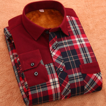 加绒衬衫男 爸爸装中年男士长袖保暖衬衫 中老年大码加厚冬季衬衣