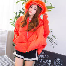欣欣Cathy 秋冬学院蝙蝠袖拼接棉服连帽毛领面包服加厚棉衣外套女