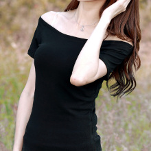 Waysha一字肩t恤短袖修身纯色学生简约一字领打底露肩上衣夏纯棉