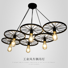 loft北欧复古铁艺工业风车轮吊灯美式创意个性吧台咖啡厅餐厅酒吧