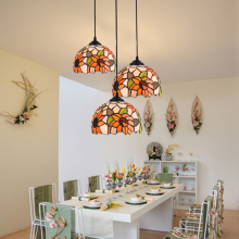蒂凡尼餐厅灯田园灯饰三头创意 地中海饭厅灯吊灯吧台玄关led书房