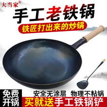 大当家手工铁锅锻打熟铁锅加厚燃气灶炒锅无涂层少油烟圆底锅包邮