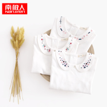 春秋时尚韩版百搭纯色女童打底衫舒适柔软纯棉娃娃领T恤刺绣上衣