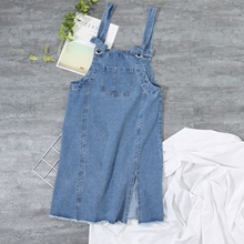Miss菜头17春夏减龄!推荐水洗浅蓝打结下开叉牛仔背带裙女连衣裙