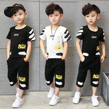 2017童装男童夏装新款5男孩套装6纯棉印花运动服8休闲中裤宽松潮