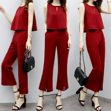 欧洲站2017新款夏季无袖上衣时尚套装大码休闲九分微喇裤两件套女