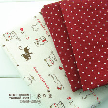 外单可爱红水玉萌猫咪手工棉麻布料 窗帘桌布抱枕靠垫DIY布艺面料