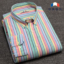 朗蒙秋季纯棉牛津纺长袖衬衫商务休闲衬衣时尚条纹男士修身男装