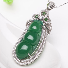 圣诞元旦特价 天然冰种阳绿 女款玉髓吊坠项链玉坠福豆S925银镶嵌