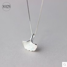 s925纯银吊坠项链女文艺森系银杏叶气质树叶防过敏纯银锁骨链日韩