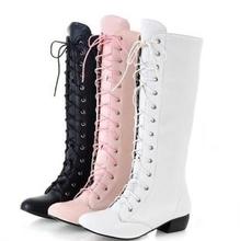 清仓cosplay靴子复古黑白高筒马丁靴骑士靴系带女靴子长靴子大码