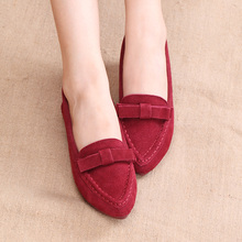 2017春季新品平跟尖头单鞋平底真皮豆豆鞋女韩版磨砂蝴蝶结休闲潮