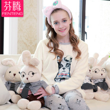 芬腾珊瑚绒睡衣女秋冬法兰绒可爱韩版加厚大码胖mm家居服保暖套装