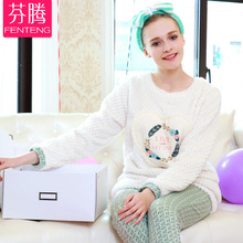 芬腾珊瑚绒睡衣女士秋冬季加厚保暖法兰绒韩版少女外穿家居服套装