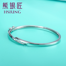 熊银匠银饰S925银手镯女款镶嵌时尚百搭银镯子简约银手环饰品