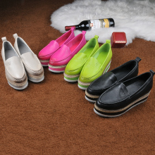 欧洲站2015春秋新款真皮单鞋坡跟休闲鞋子浅口平跟厚底松糕女鞋潮