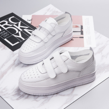 欧洲站2017春小白鞋女真皮平跟魔术贴内增高单鞋休闲松糕厚底板鞋