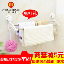 丰庆吸盘式卫生间毛巾架 免打孔双杆浴巾架不锈钢浴室挂毛巾杆子