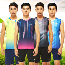 特惠川崎无袖羽毛球服装上衣T恤 男款圆领运动背心 透气速干干爽