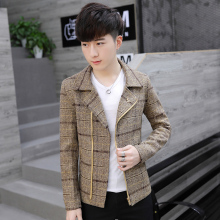 春季短款风衣男青少年学生韩版帅气毛呢外套男装修身型呢子夹克潮