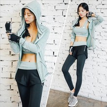 2017春瑜伽服运动三件套装女跑步衣春秋季显瘦速干外套假两件长裤