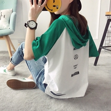 韩版宽松学生百搭时尚显瘦连帽五分袖T恤女打底衫半截袖春夏上衣