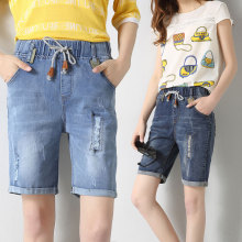 夏季大码牛仔短裤女松紧腰破洞宽松五分热裤胖mm薄款显瘦卷边高腰
