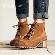 妙侣2016秋冬新品复古平底圆头短靴女英伦平跟马丁靴系带女靴子冬