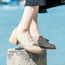 2017春季新款复古粗跟流苏单鞋女圆头中跟鞋子女英伦风布洛克鞋女