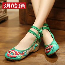 娟的绢 春季 老北京布鞋女单鞋 内增高民族风绣花鞋 412-151