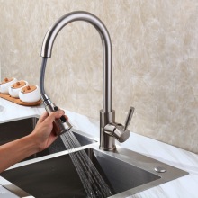 文洁出口德国抽拉厨房水龙头冷热全铜旋转洗菜池抽拉式水槽龙头