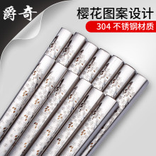 爵奇 304不锈钢筷 韩式方形金属合金筷防滑 家用筷子套装10双