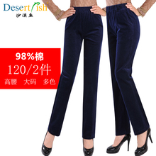 秋冬女裤中年休闲裤女条绒裤灯芯绒长裤妈妈装高腰直筒大码女裤子