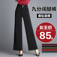 2017春夏阔腿裤女九分裤黑色高腰大码直筒裤宽腿休闲裤大脚裤舞裤
