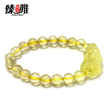 臻唯 天然5A级宝石刻面天然黄水晶貔貅手链单圈 男女款 天然水晶
