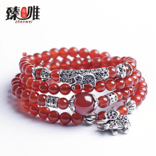 臻唯 开光红玛瑙手链女款 配饰吉象如意四圈手串/项链 新年开运